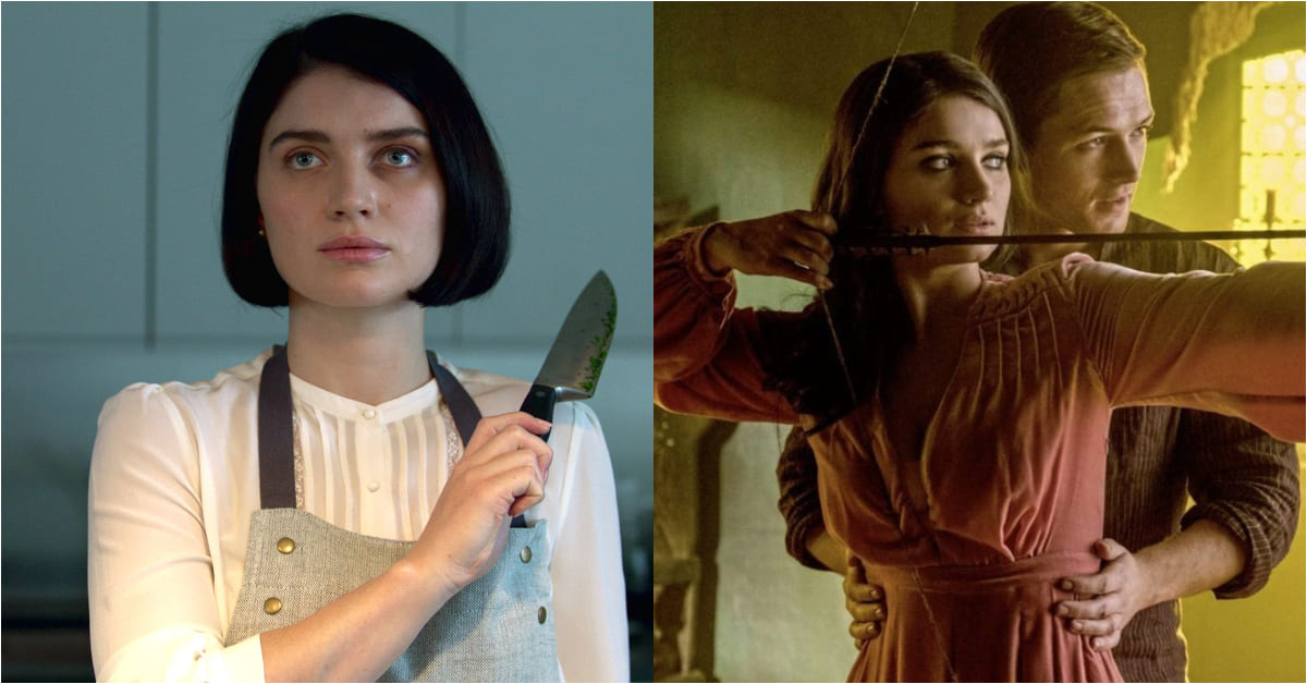 很快地伊芙·休森遇上人生的代表作《羅賓漢崛起》,與泰隆艾格頓(Taron Egerton)扮演有情人「羅賓漢」和「瑪麗安」,兩人的火花是電影當中的重心,不只有單純放閃劇情,而是互動自然彼此相愛相殺的戀人,伊芙·休森的加入也讓電影帶有一絲浪漫的色彩,而她在戲中古典美麗的扮相,也讓觀眾開始注意到伊芙·休森這位來自愛爾蘭的美女星二代。