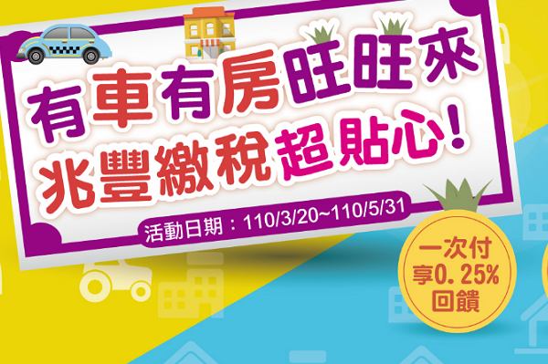 活動期間,持兆豐銀行信用卡繳納110年度牌照稅、房屋稅享以下優惠: