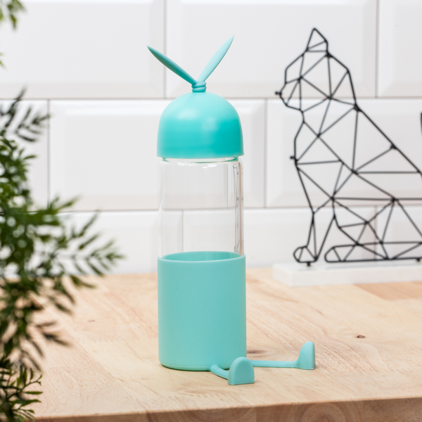 有些兔兔不只耳朵長,腿也很長~這款玻璃水瓶特別設計成長腿兔兔的造型,除了瓶蓋上有兔兔長長的耳朵,瓶底還有兔兔長長的雙腿,這樣擺在桌上就不容易翻倒,而且感覺就像是兔子陪你一起喝水!