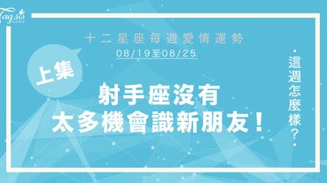 - 【08/19-08/25】十二星座每週愛情運勢 (上集) ~ 射手座沒有太多機會識新朋友!