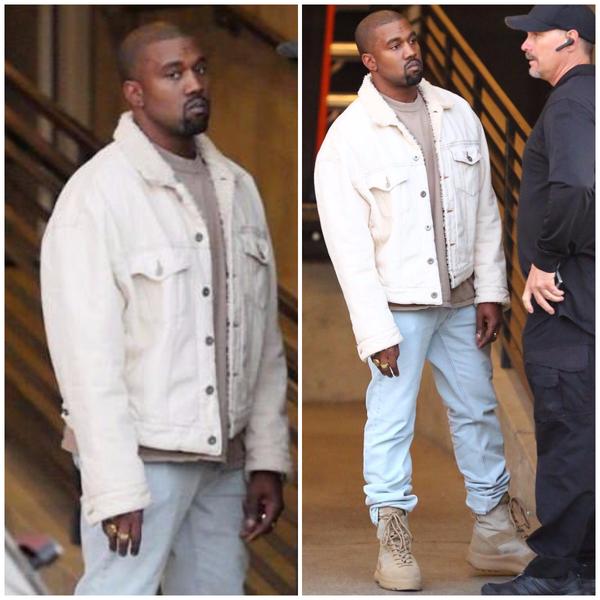 40歲美國饒舌天王Kanye West不僅在音樂上有一番成就,就連跨足潮流設計都獲得了巨大的成功,外加擁有一名身材火辣的老婆Kim Kardashian,被許多網友稱之為人生勝利組,而近日肯爺被捕捉到與家人拍攝全家福的畫面,一身米白羊羔絨牛仔外套搭配牛仔褲及軍靴,整體造型休閒又有型,潮度破表!