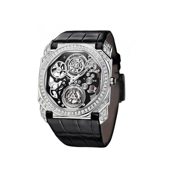 ▼寶格麗 BVLGARI Octo Finissimo Tourbillon 超薄鏤空陀飛輪鑽錶 : 全球限量 5 只,價格約台幣 684 萬。