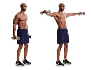 ・手臂伸直抓啞鈴在身體兩側,雙腳與肩同寬