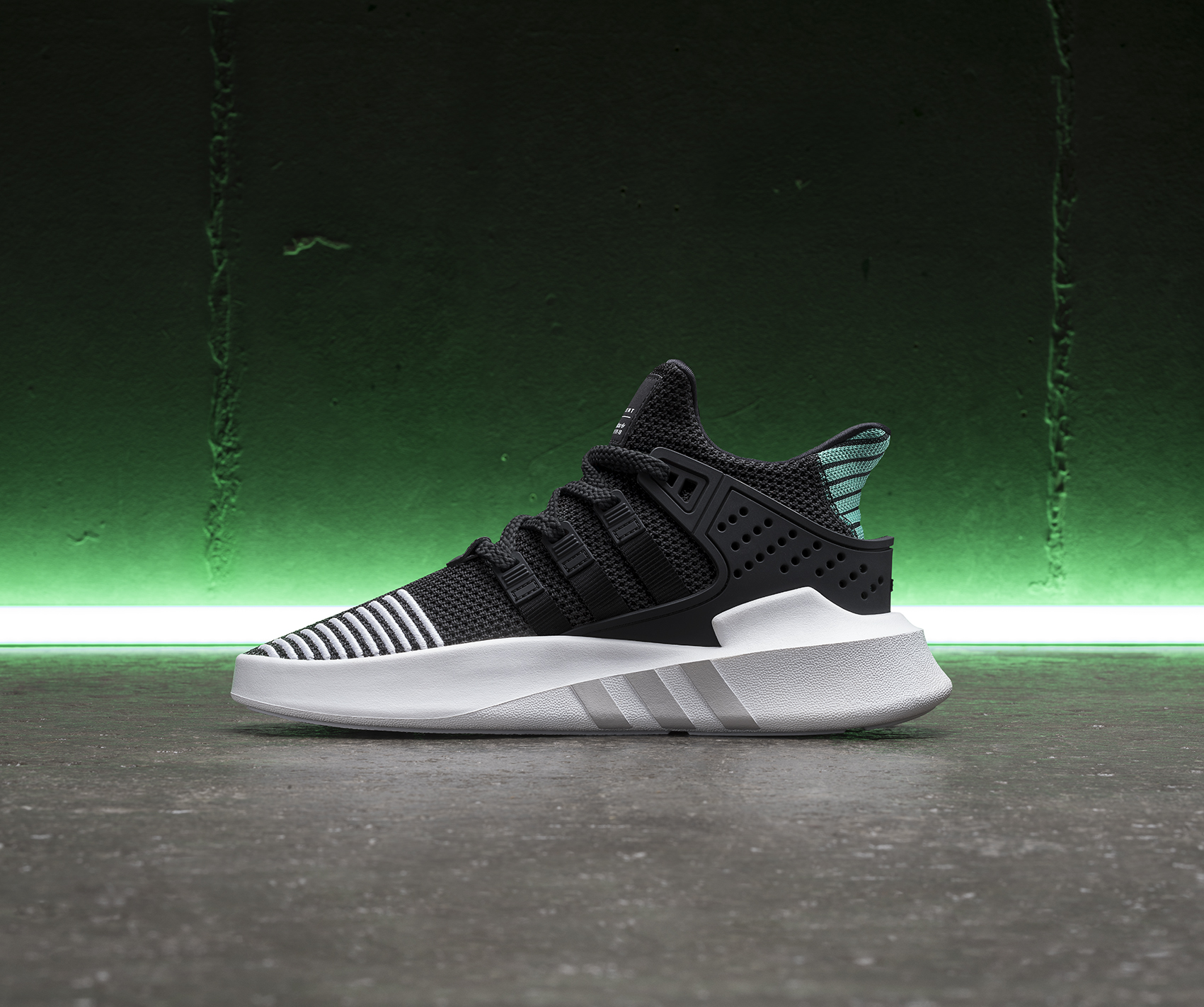 EQT BASK ADV 保留 EQT 經典的設計基因,注入籃球鞋特質,配有特大外底、襪筒型高筒鞋身及內藏式鞋帶繫法,Unisex 款備有黑配綠、藍及橙紅色鞋 跟配色,另備有灰白配綠色鞋跟款式。女裝則採用全白鞋身配淺藍鞋跟配色。