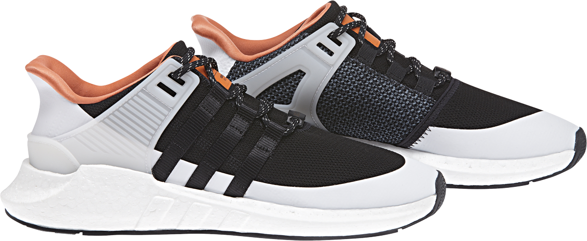 EQTSupport93/17外型革新前衛,鞋款備有灰、黑配色,分別配上綠及橙色的內裡及鞋舌標籤。