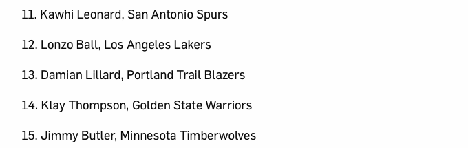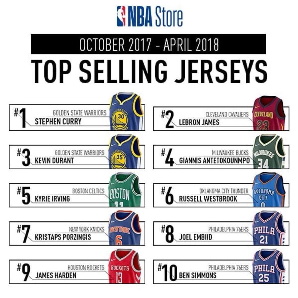 排在Curry次後的分別是Lebron James、Kelvin Durant、希臘「 字母哥 」Giannis Antetokounmpo 和Kyrie Irving,其中Irving的球衣銷量更比今年1月的統計爬升了7位!