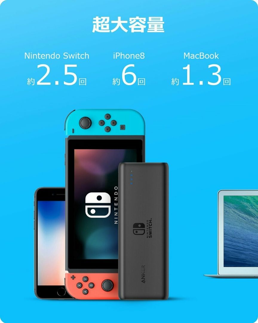 Anker 推出了 Nintendo 官方認證的 Switch 急速充電行動電源!一共有兩款, 13400mAh的可以充電 1.7 次,而另一款為 20100mAh,可充電 2.5 次,充電器用了 Anker 的 PowerIQ 充電技術,邊充電邊進行遊戲 3 小時便可將主機電力從 0% 充滿,絕對是打機迷的福音!