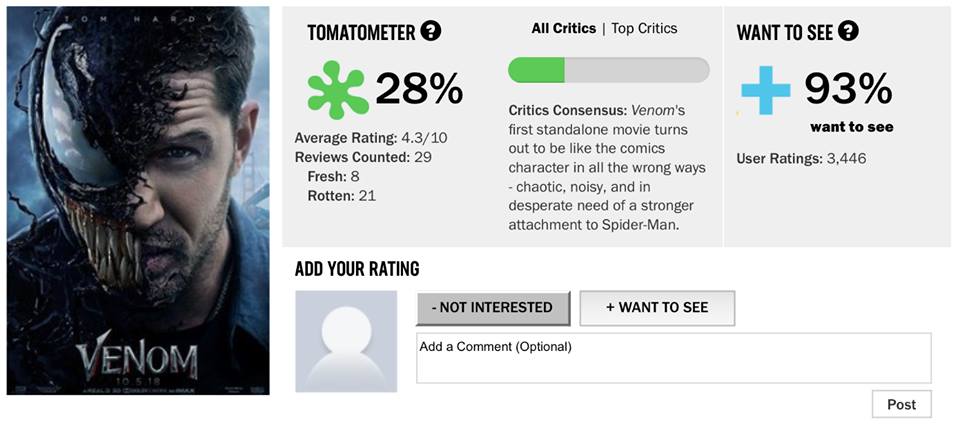 可惜在首映後,知名影評網站Rotten Tomatoes(爛番茄)最低僅給28%新鮮度,不少影評人更留下劣評。