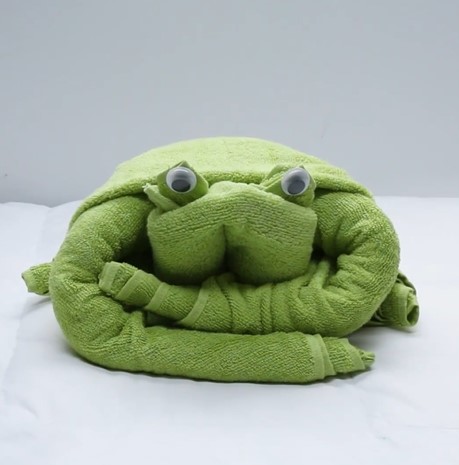 ▼ 青蛙 (兩條毛巾,一條浴巾和一條手巾)