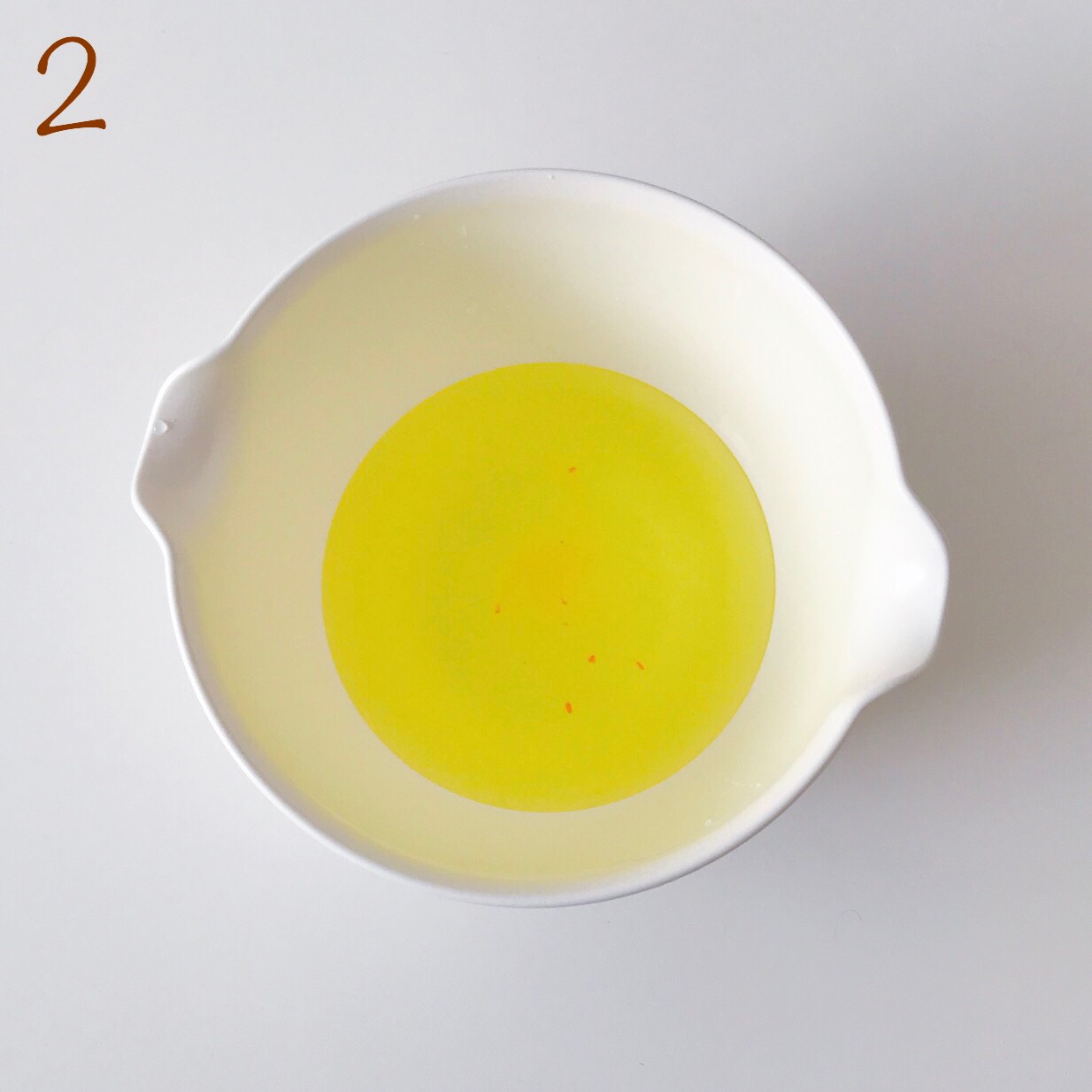 1. 用溫水加入黃色的色粉溶解並混合,只要少許就可以。