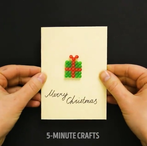使用不再用的LEGO或珠珠,拼上聖誕的圖案,再寫上祝福的文字就完成嘍!