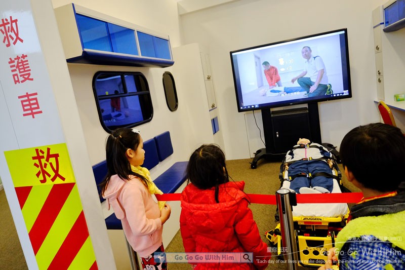 ▲ 來到一樓的『救護服務展覽區』,『大隻版』救護車,會播放急救方法