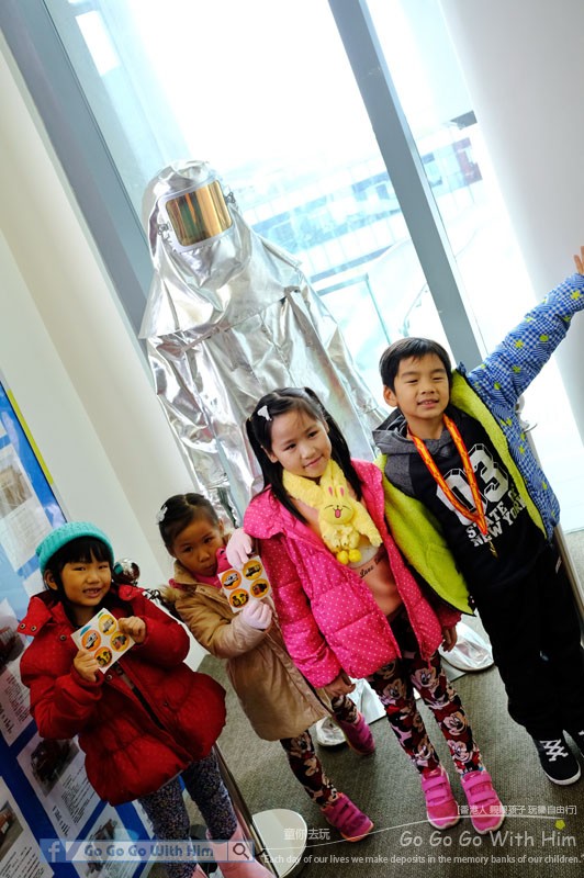 ▲ 小朋友背後的不是太空衣 :p 而是油庫、飛機和隧道火警專用的『鋁質抗熱袍』(多謝Alan介紹,長知識了!)
