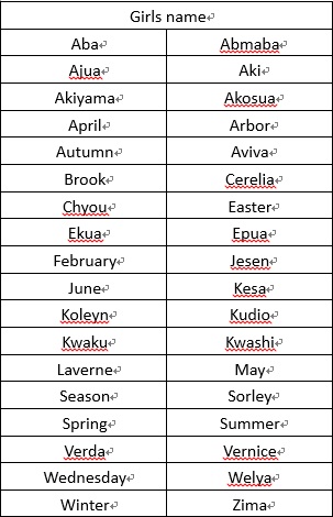 以上,是常見用月份、星期、季節的英文名,都是較為中性的名字,有些男女都可以使用的。還有什麼用月份、星期、季節的英文名?看看以下的表格吧!