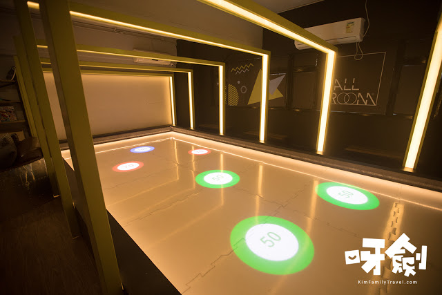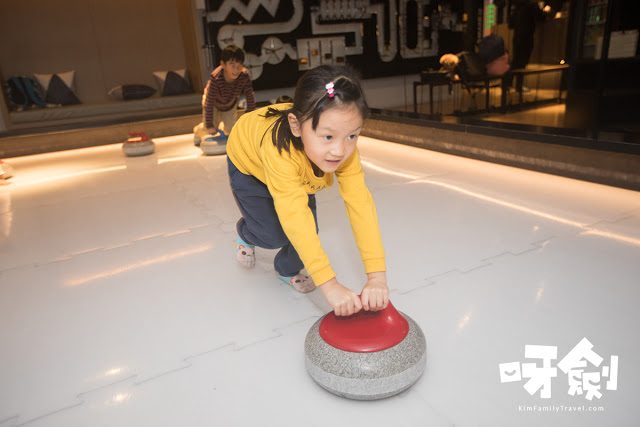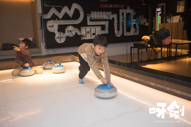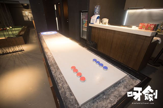 觀塘1店這裡還設有一個桌上沙壼SHUFFLEBOARD,冬季奧運會加入了這個運動,就給小朋友先認識下,到時看比賽他們就會有興趣一點。看似好容易,但是真係的很難玩,幾乎下下都要大大力推下坑。
