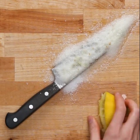 1. 在生銹的位置上,灑上鹽和檸檬汁,待10分鐘後,使用剛剛的檸檬擦走那上鹽,就能清走生銹。