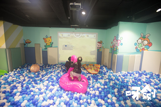 原來呀芊指著的,就是(遊戲區:奇幻互動地帶),哥哥最喜愛的大型投影光幕,可以給小朋友隨手拿起波波扔去打怪獸。哥哥一直留在這裡玩了整個小時,所以之後那些相片,都不多看到他。