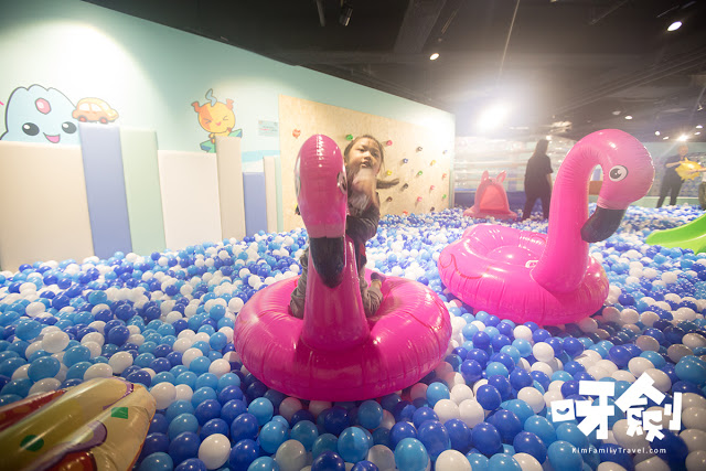 呀芊一直在跟Flamingo玩,坐在波波池上面飛,連扔球玩互動遊戲都懶得下來...