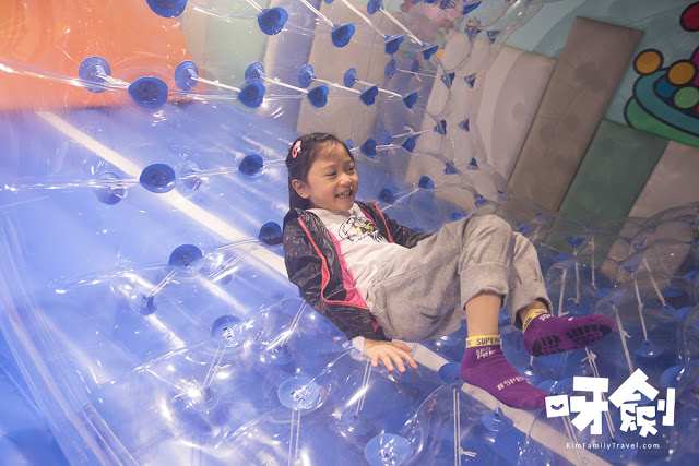 最吸睛是這個大滾筒(遊戲區:太空彈步),兩小朋友立刻鑽進去滾個不停,還記得呀芊小時整日都唱「Ten in the bed」唱到「Roll over roll over」就在床上左滾右滾,這次真的適合她。