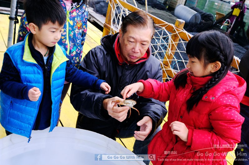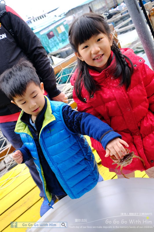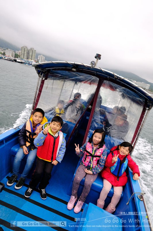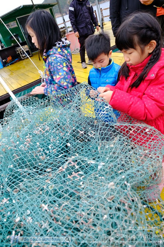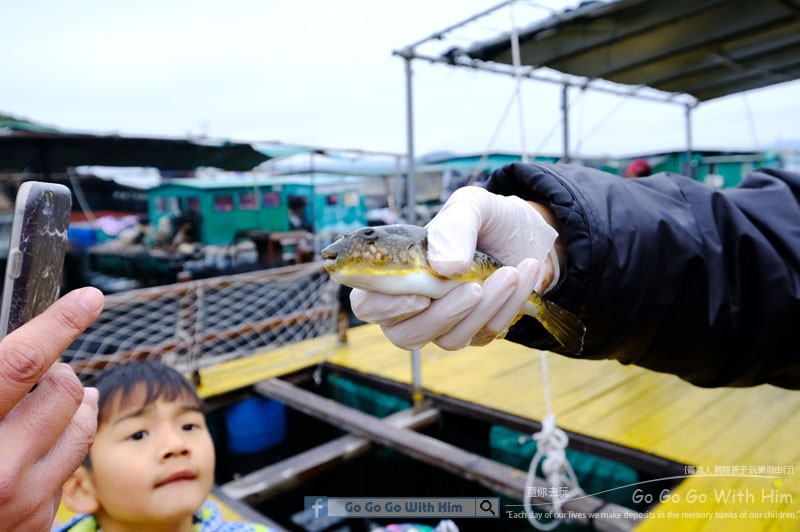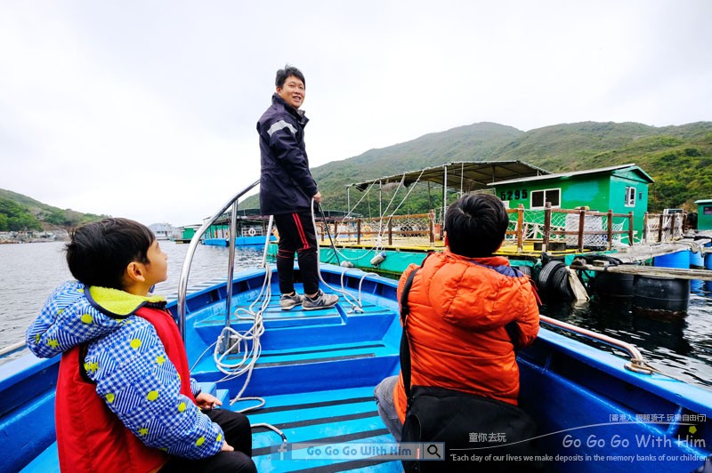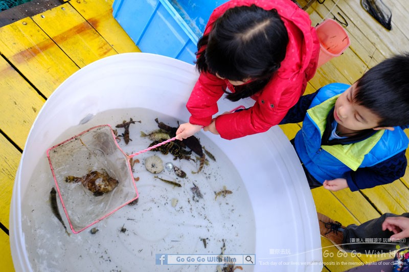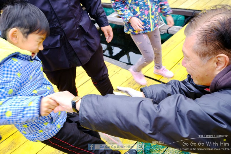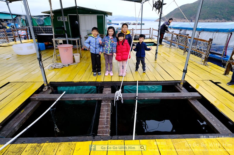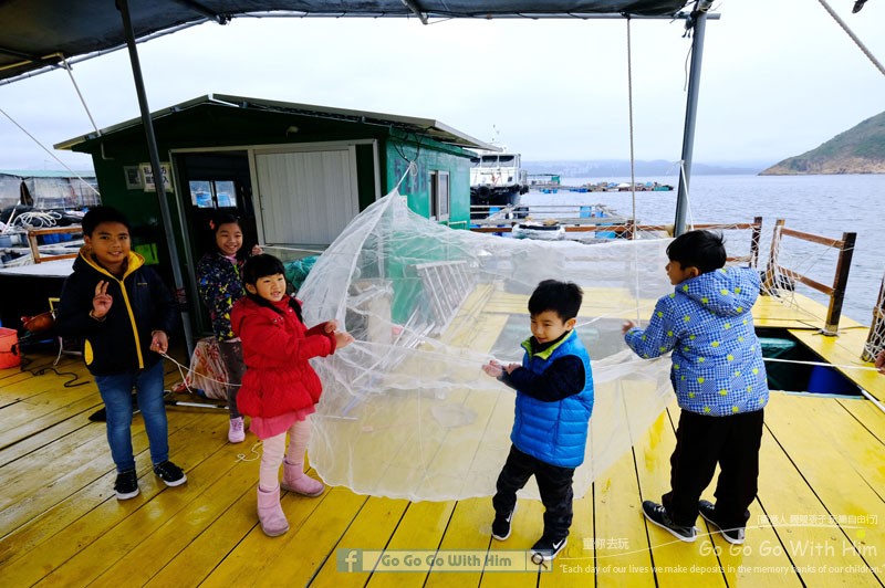 一到埗,船長九叔便取出魚糧讓小朋友餵魚,超興奮!