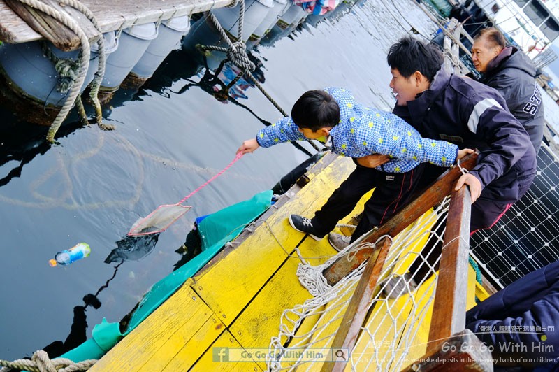 謙謙嘗試捉水母,看到圖中的垃圾膠樽嗎?其實常常會看到…也想藉此圖讚賞Alex 哥哥的體貼。