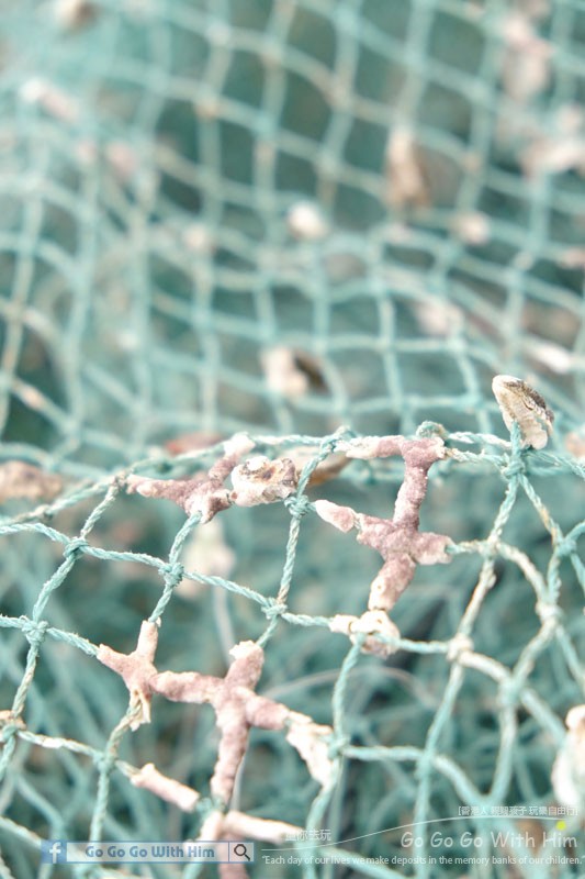 之前放到海中的漁網,是為了讓小朋友有觀察貝殼的機會,還細心地曬乾以致沒有異味