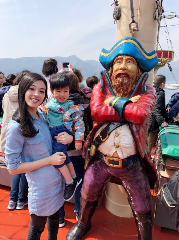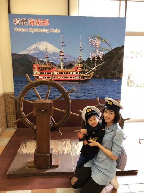 海賊船到達「桃園台」我們就下船囉,準備換乘空中纜車(Ropeway)前往「大涌谷」參觀火山口 。我們還在這穿上水手服拍照留念~