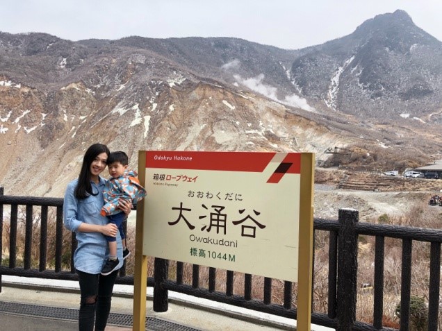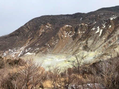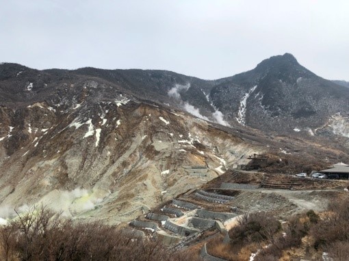纜車很快就到了「大涌谷」,讓我們好好欣賞40萬年前火山爆發後的遺跡,一下車就可以聞到濃濃的硫磺味呢。