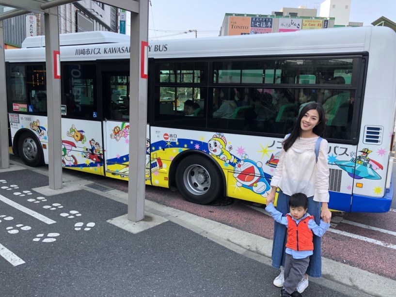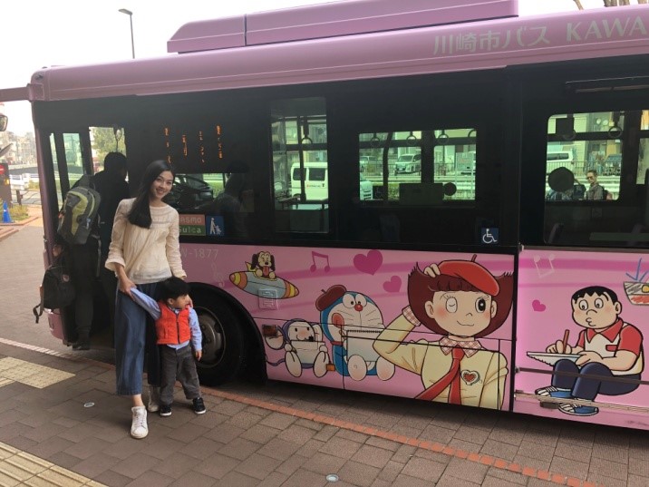 快閃親子遊最後一天我們去藤子·F·不二雄博物館玩啦,利用周遊券由新宿出發搭小田急電車大約20分鐘就可以到達「登戶站」,然後轉乘博物館的接駁車即可到達。