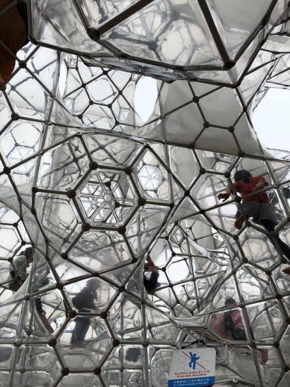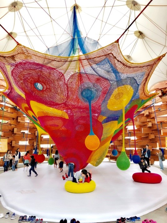 另一個「ネットの森」更是好玩,由巨型橫木組成的圓頂,裡面則是大型彩色攀爬網~