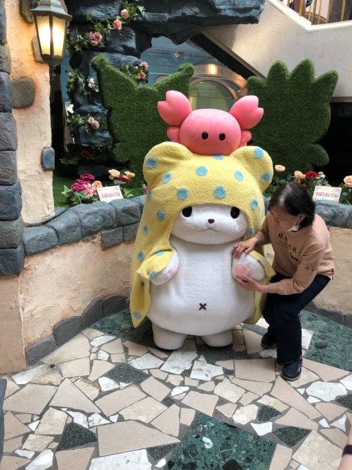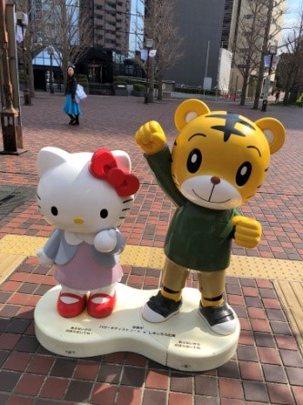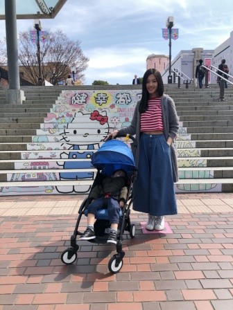 一出站就看到Hello Kitty樓梯,果然是個靠Sanrio搵食的地方,哈哈。(暴龍在火車上安穩地睡著了)