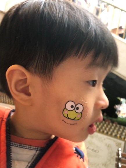 暴龍還去畫了臉部彩繪~