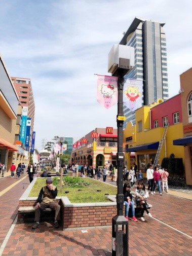 沿著掛上Hello Kitty旗幟的路燈走,很快就見到彩虹樂園啦!