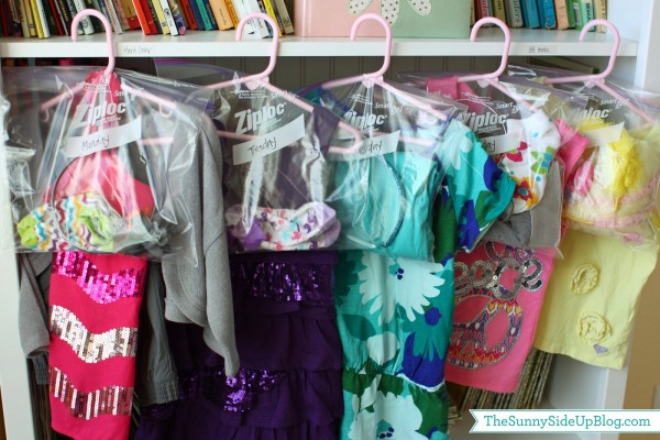 3. 用袋子將配搭相應衣服的配件放在一起,找起來時就比較容易啦~ 還可以先為孩子配搭出數天的服飾並作標記﹙比較適合放假期間,香港上學的孩子都穿校服回校呢﹚。