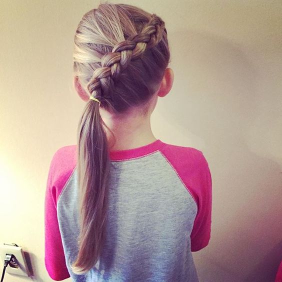 ▼ 把整條辮仔,鬢向其中一邊,可以鬢一半辮仔,然後扎上馬尾。讓小女兒變成小女神的感覺。