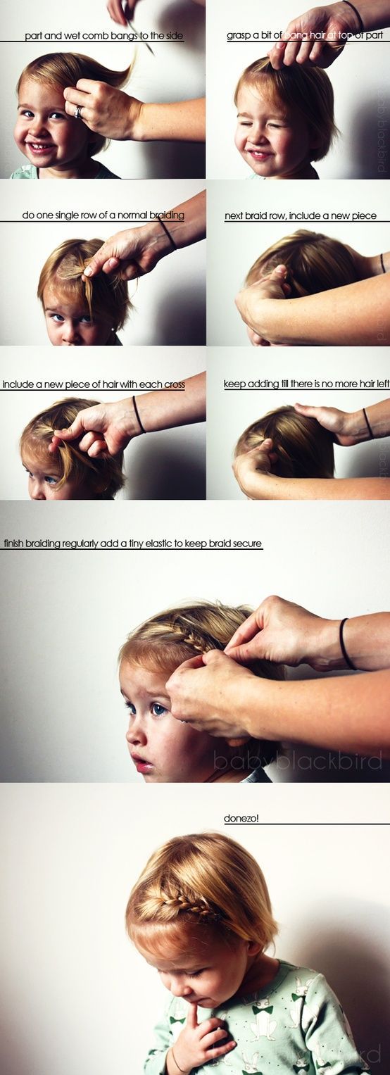▼ 在前蔭鬢上辮仔,簡單同時避免頭髮阻擋小朋友的視線。