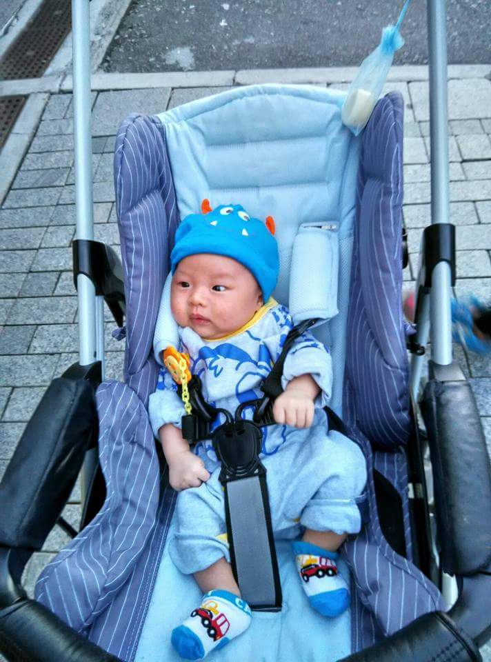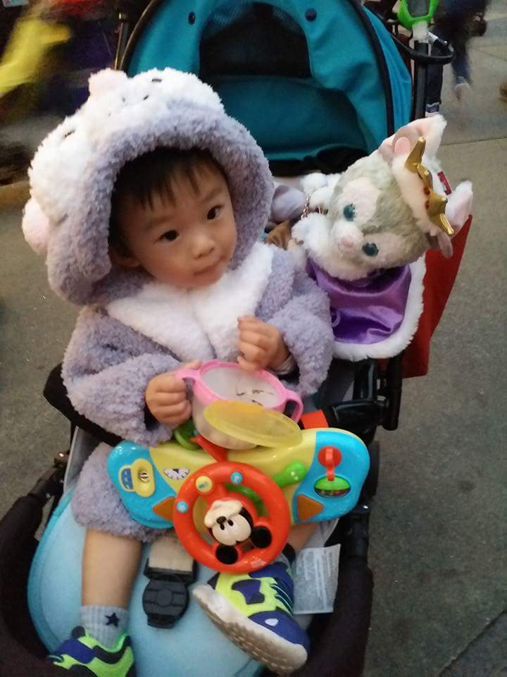 到桃後來滿一歲多,已經開始跑跑跳跳的他,b車的作用已變成用來放物及在他放完電後用來稍作休息 ,亦因此會選用士的車。
