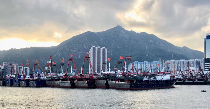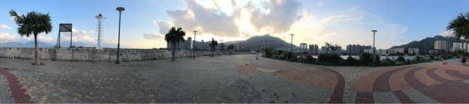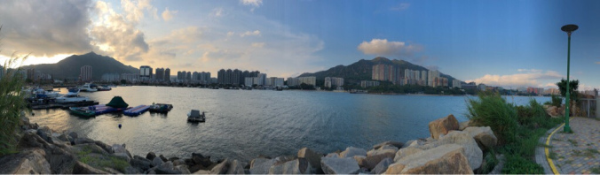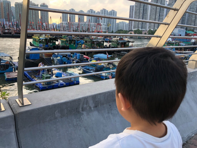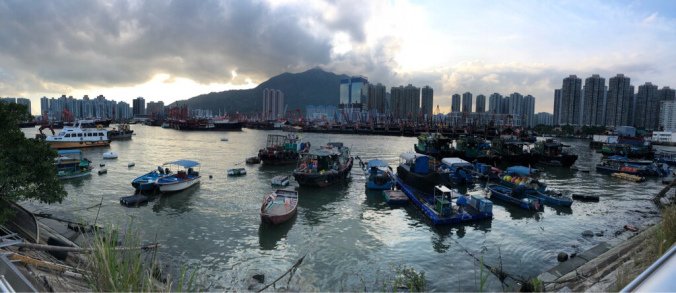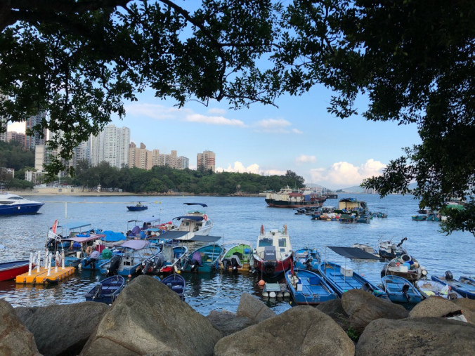 慢慢走的步速行入盡頭大空地大概用了20分鐘,沿途景色非常優美,可以看到避風塘內的漁船一架架停泊在裏面。