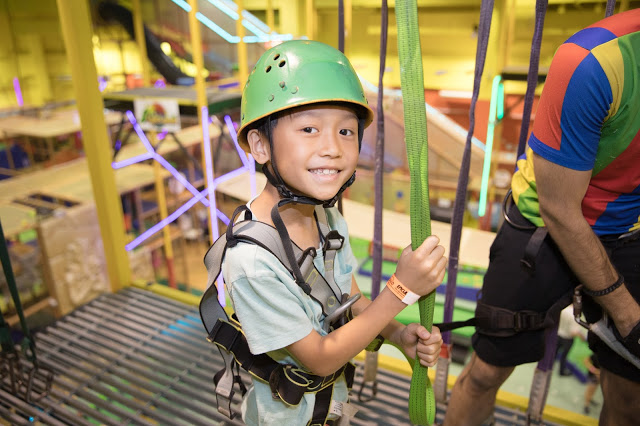 因為哥哥都已經8歲了,高度都達到指定標準,可以到EpicLand 歷奇王國玩主打活動「空中漫步」喔!