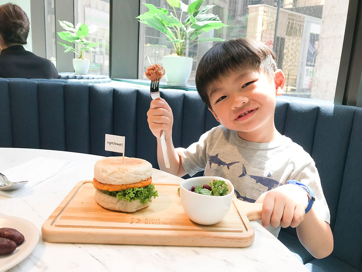 Kind Kitchen是香港素食餐廳Green Common集團旗下,愛吃素的人對Green Common一定不會陌生喔!Kind Kitchen是全港首間親子友善純素食餐廳,寬敞的用餐環境更打造成女生大愛的夢幻色系,餐廳有一個小小玩具角讓小朋友玩玩順便學習素食小知識,還有一系列的純素兒童餐,更有全球首推的 "新豬肉"菜式,使用植物材料製作質感像真的素豬肉。餐廳更緊連接著純素食超市!有得食、有得玩、有得買,素食媽媽天堂!