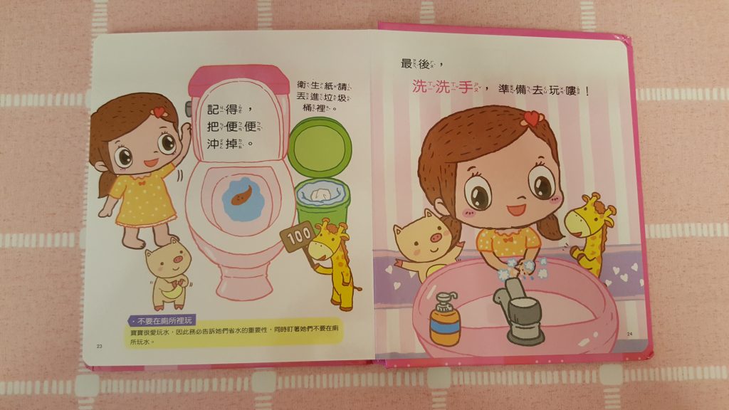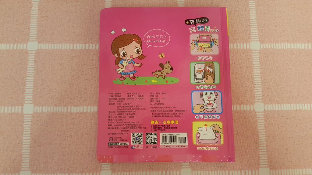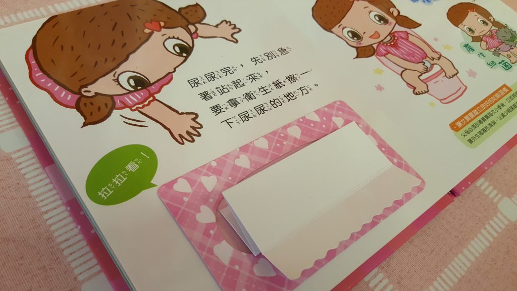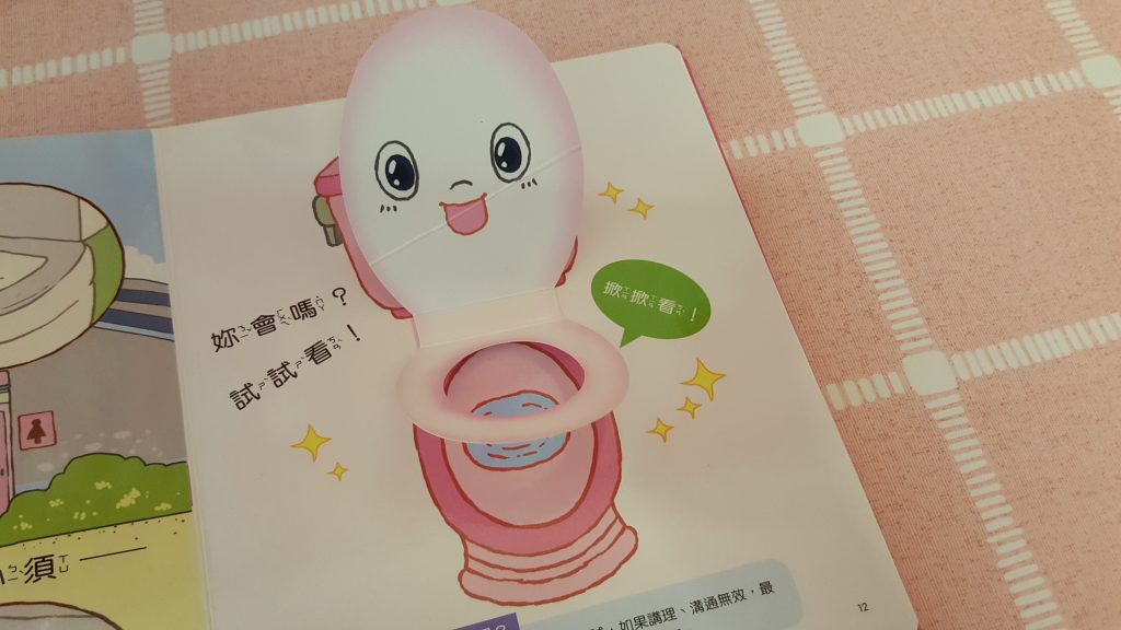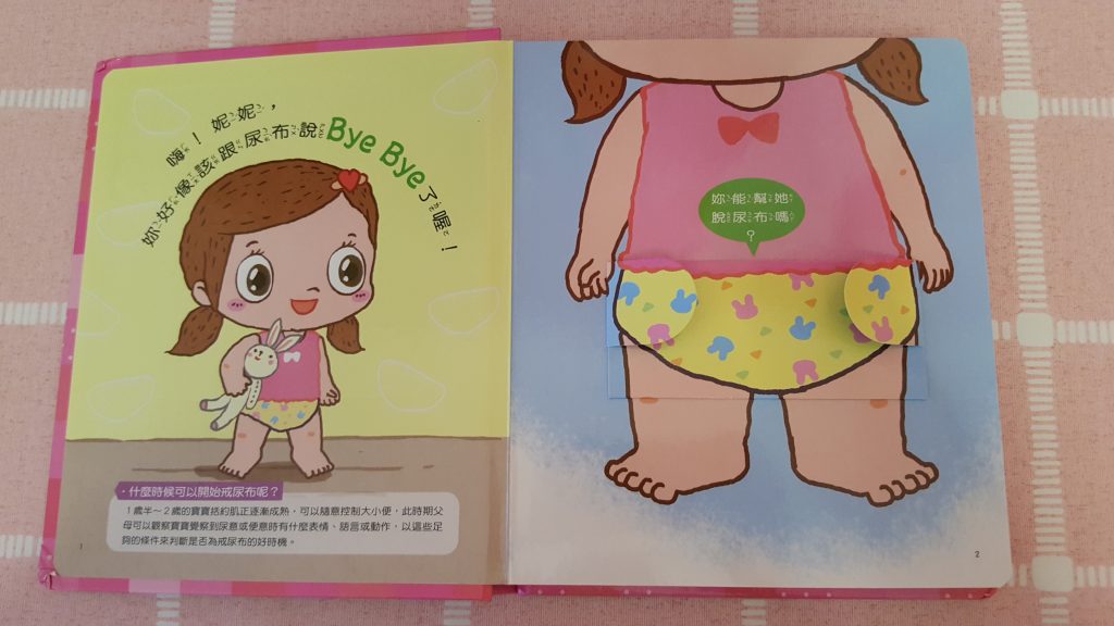 包包不知不覺快將3歲上學了!是時侯學習自理 ,例如:戒片這個必經階段;但每位家長都知道戒片這個舉動可能是漫長的,也有可能 當她上學時看到其他小朋友 已沒有穿上尿片,而覺得自己應該也已長大了,便能靜悄悄地戒掉。所以便買了這款妮妮上廁所的書籍,這是一本幼兒生活教育立體書。