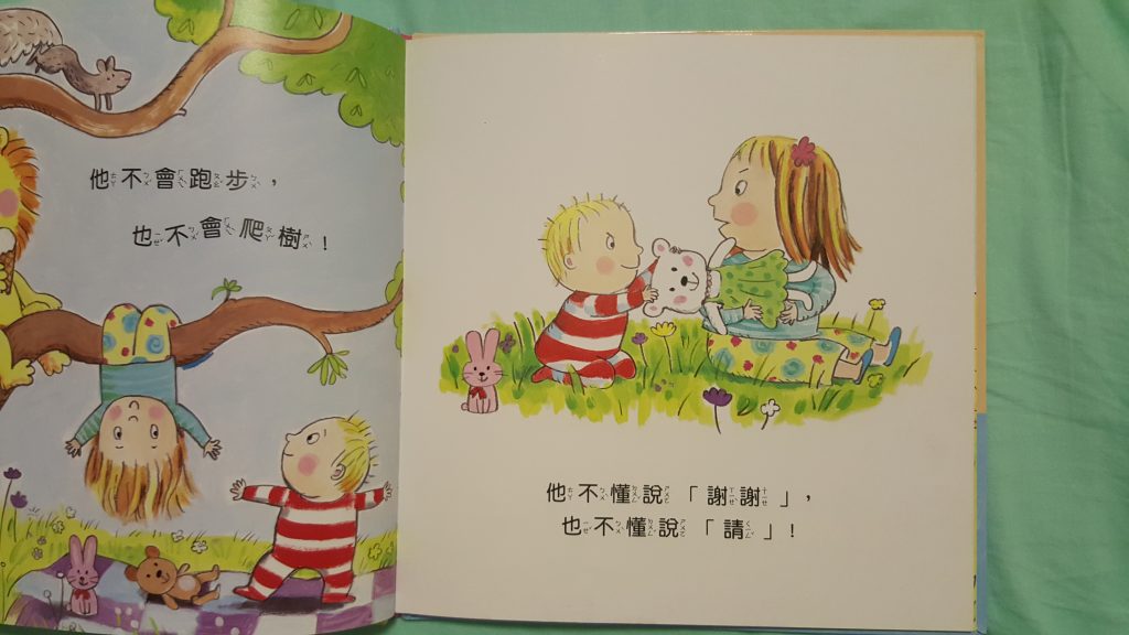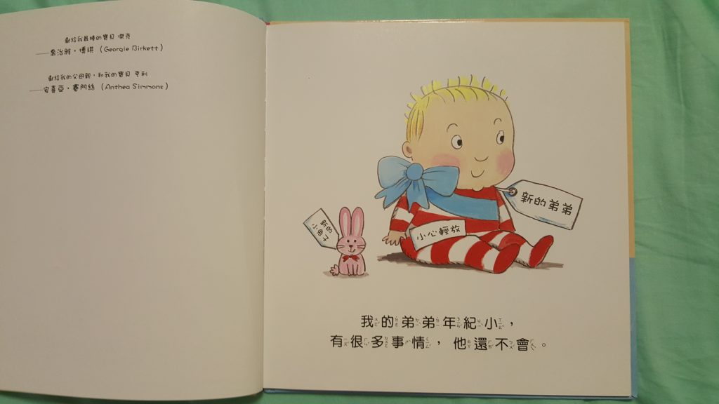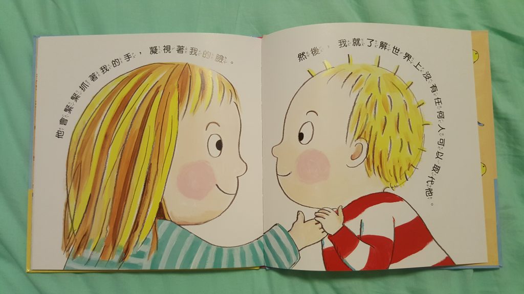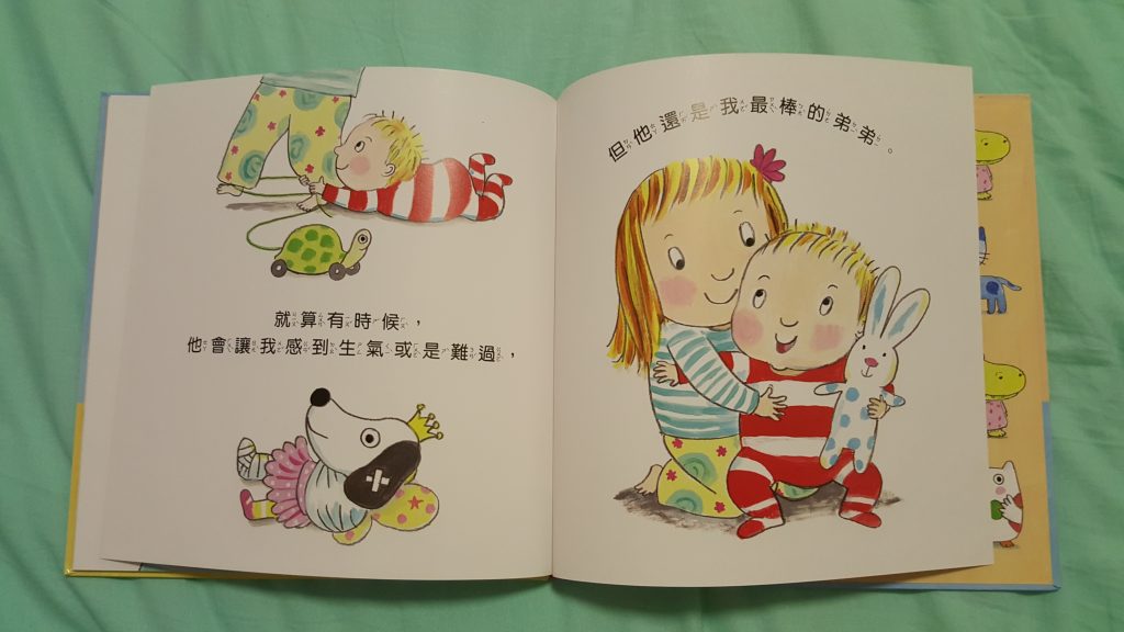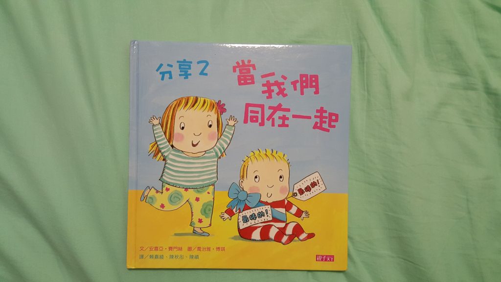 自從每晚都講一次這本故事書,結果包包終於明了這道理: 慢慢學會控制自己,懂得說手手不是用來打人的( 希望能戒掉了這個壞習慣)。自從有了細佬b後,我有聽取護士意見,慢慢向她灌輸二寶生活的畫面。先為了令包包不討厭細佬b闖進她的生活,一早就為細佬b準備一份送給家姐的禮物,跟著便買了這本《當我們同在一起》的故事書~