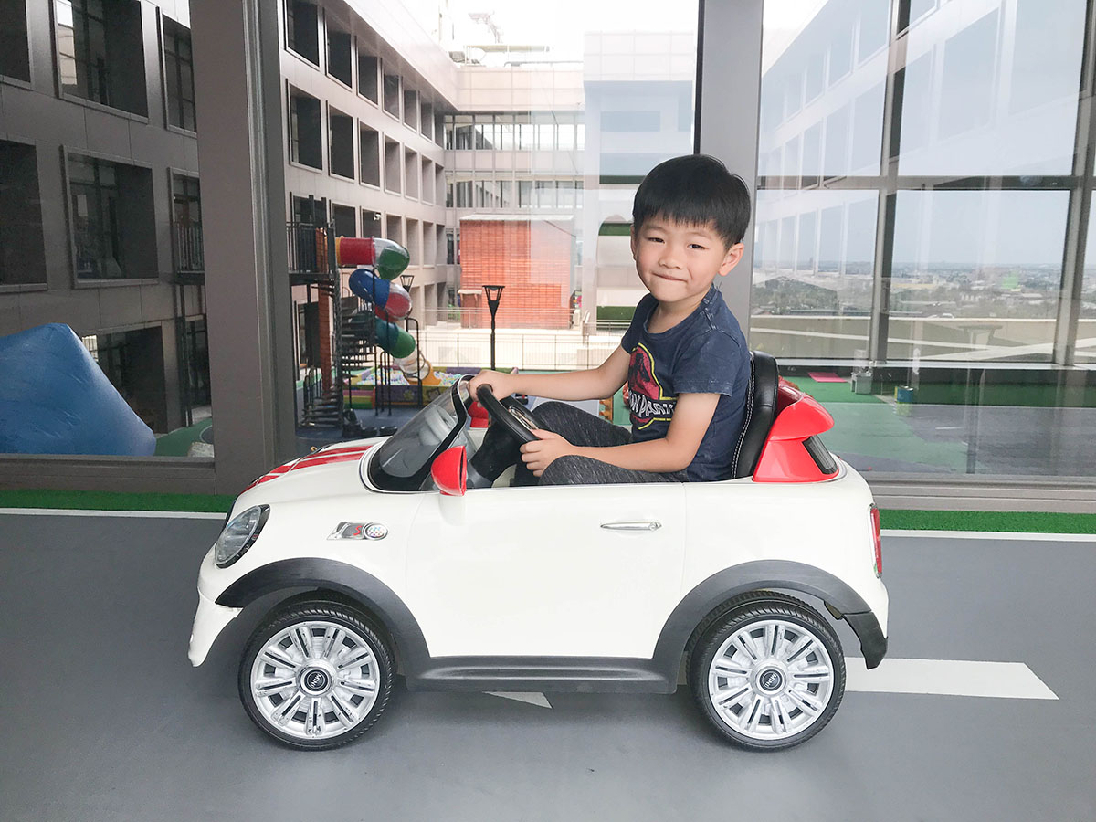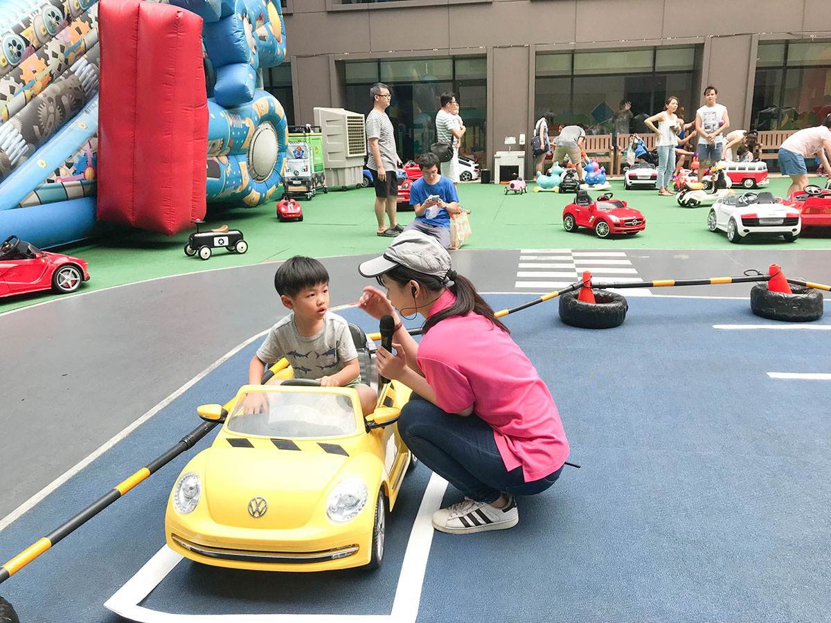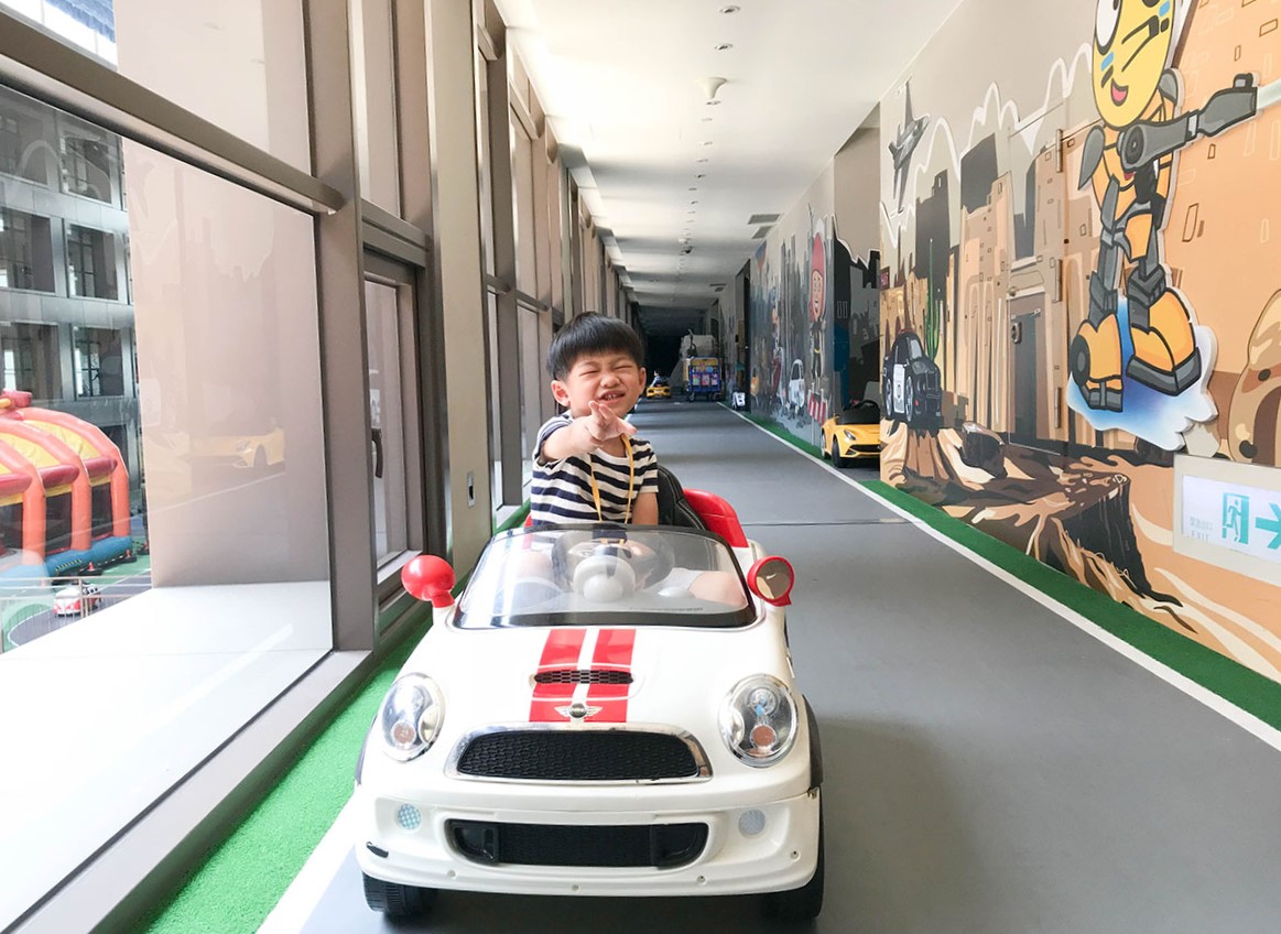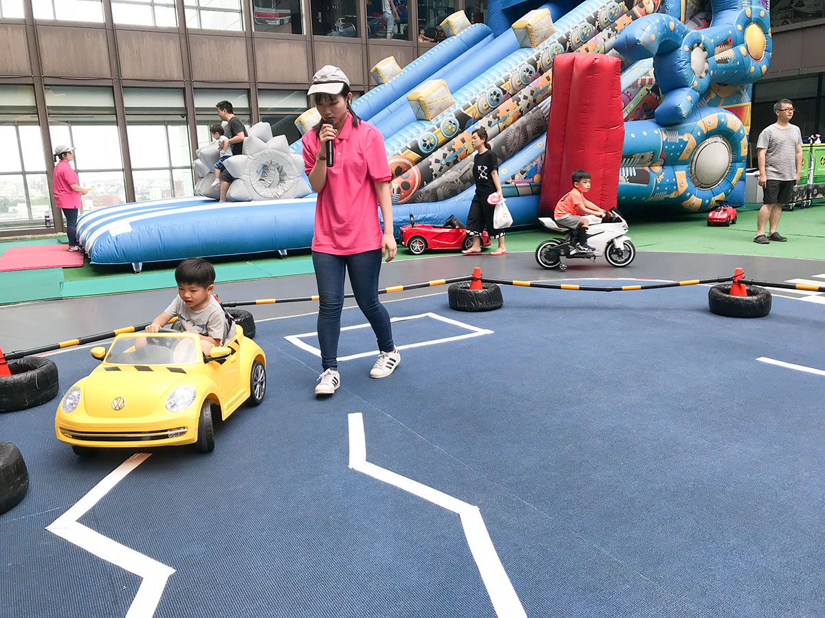 來到8樓露天廣場,簡直是小朋友玩樂天堂! 大型的賽車跑道,海量名廠電動車任你開!