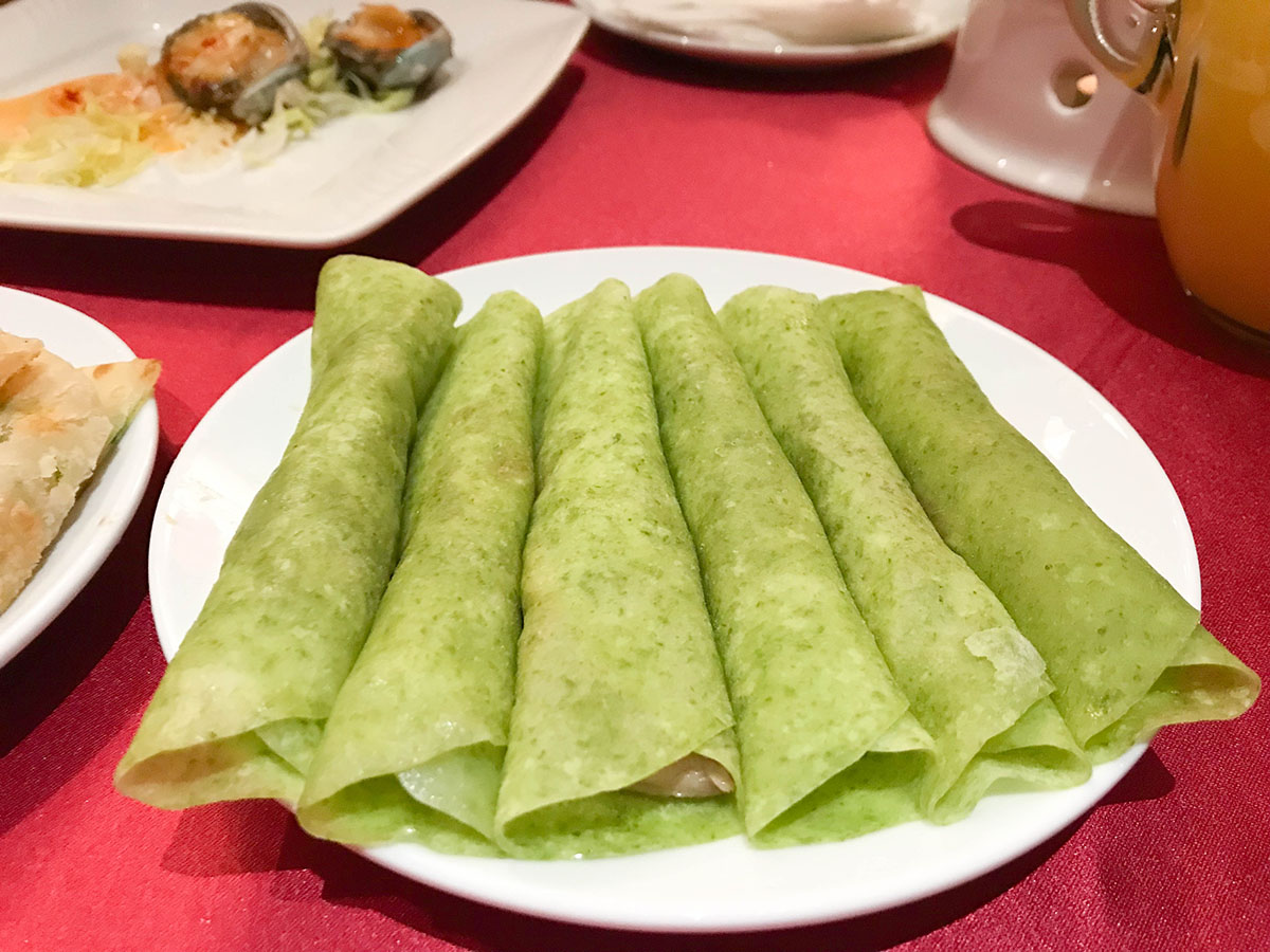 片皮鴨捲三星蔥餅。