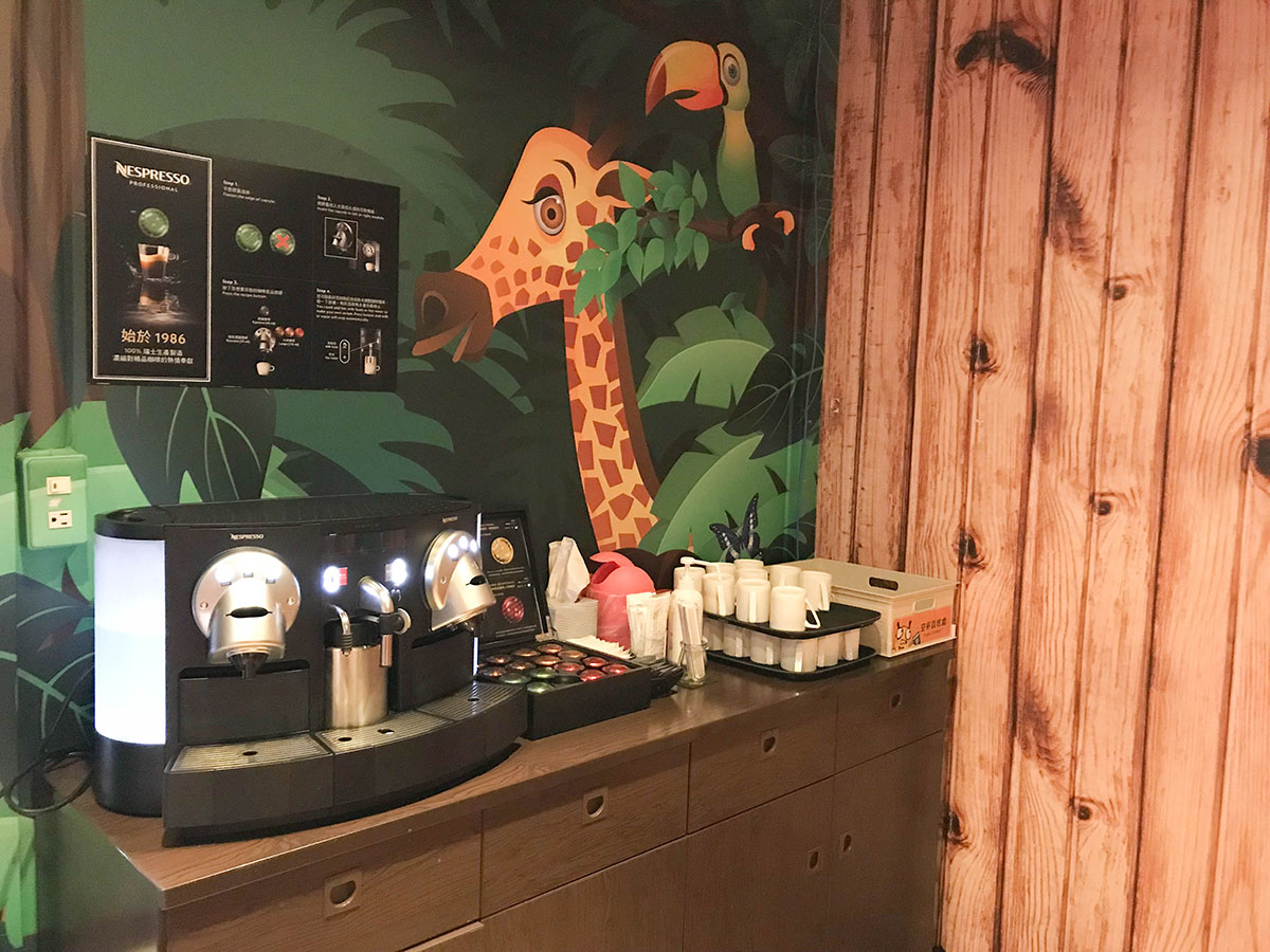還有茶水咖啡供應!媽媽可以在這裡邊看小孩邊好好休息,終於可以優雅地喝咖啡帶小孩!