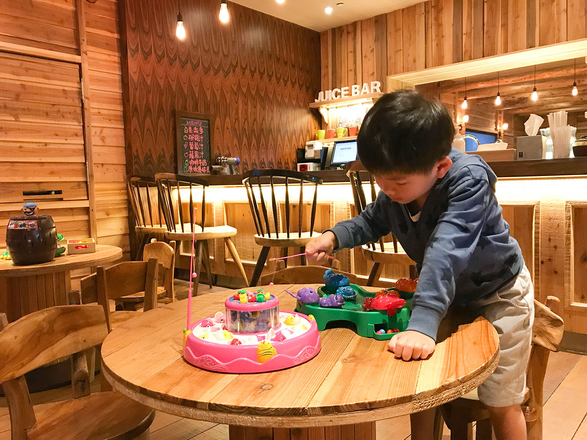 小孩在這裡玩桌遊,還有75吋互動電視可進行主題拍照和趣味互動遊戲。