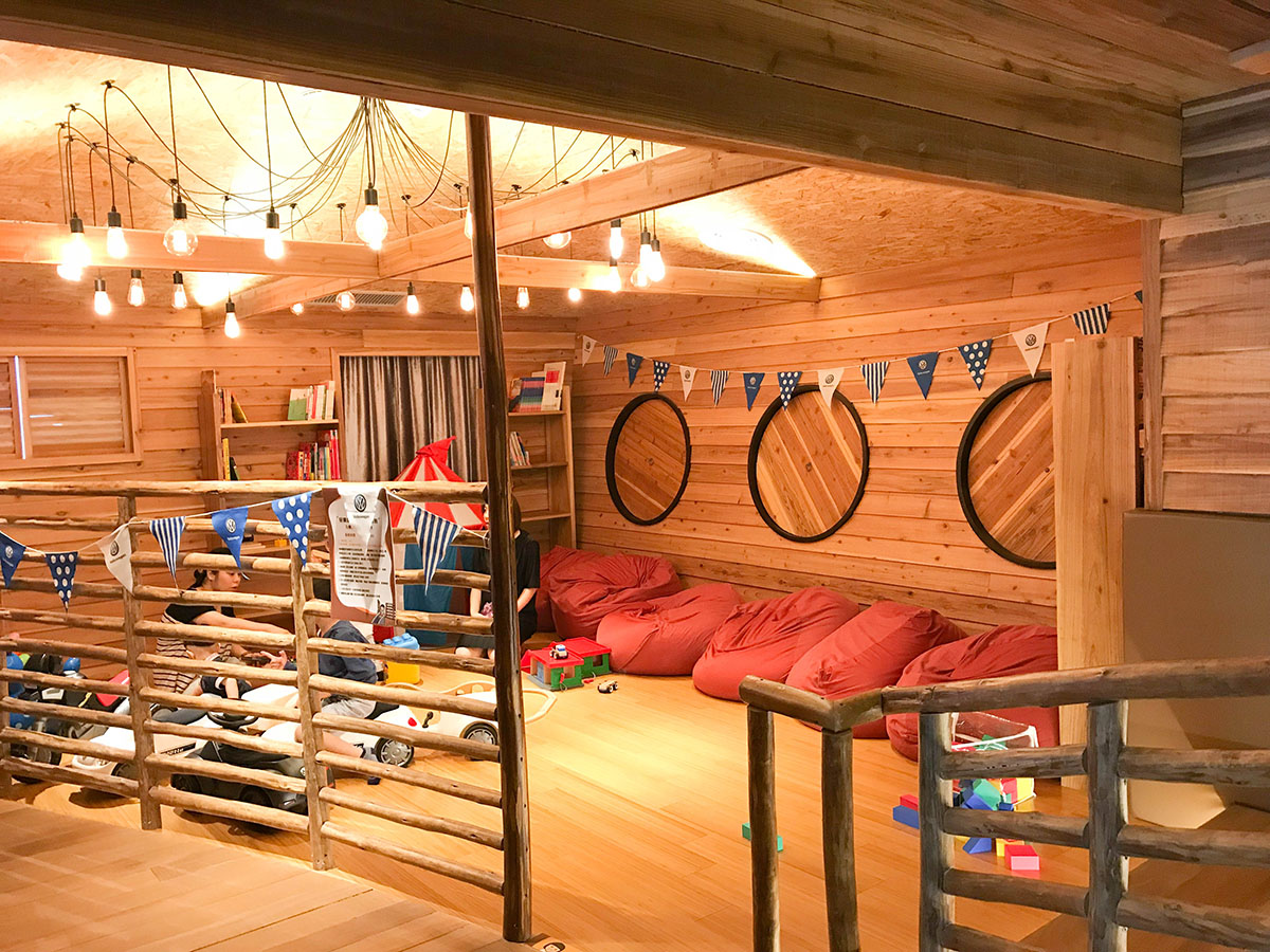 如果小小孩不會開車,可以帶進來這裡玩啊!這裡有冷氣開放,還有迷你廚房、學步車、兒童書藉等。