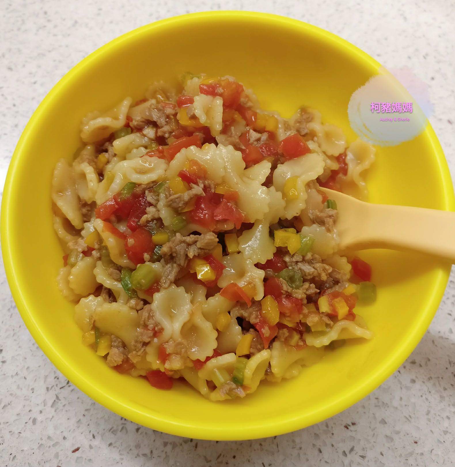 ▼ 橙紅椒波菜蕃茄肉碎+baby pasta