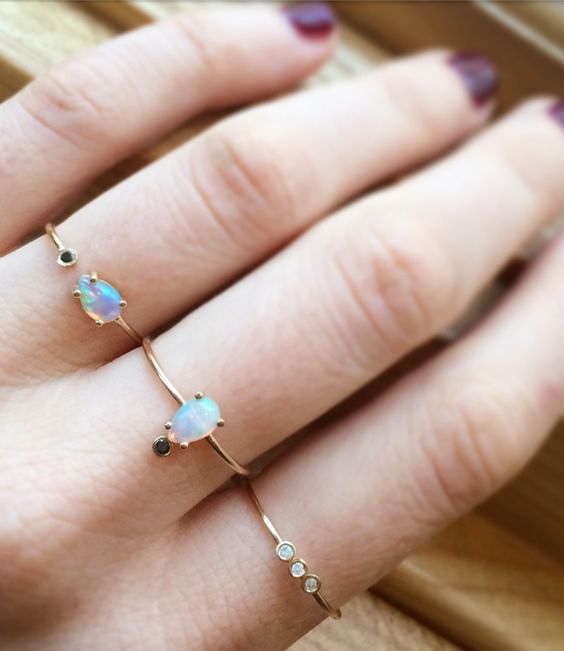 ▼這一套黑色的小戒指充滿神秘感呢~三角形寶石很有復古的味道哦~