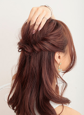 5. 用手輕輕拉扯兩邊的扭轉髮束,讓髮束變蓬鬆,看起來更加飽滿。